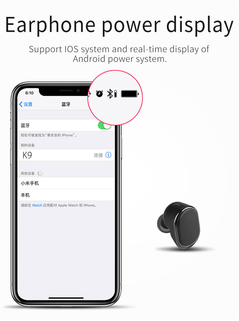 TWS K9 Wireless BT V5.0 Earphones Waterproof Headphone 3D Stereo Wireless Earphone Wireless Earbuds With Mic For iPhone